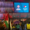Taraftarlar, saha içinde ve dışında bayrak sallayarak, slogan atarak Filistin'e destek oldular.