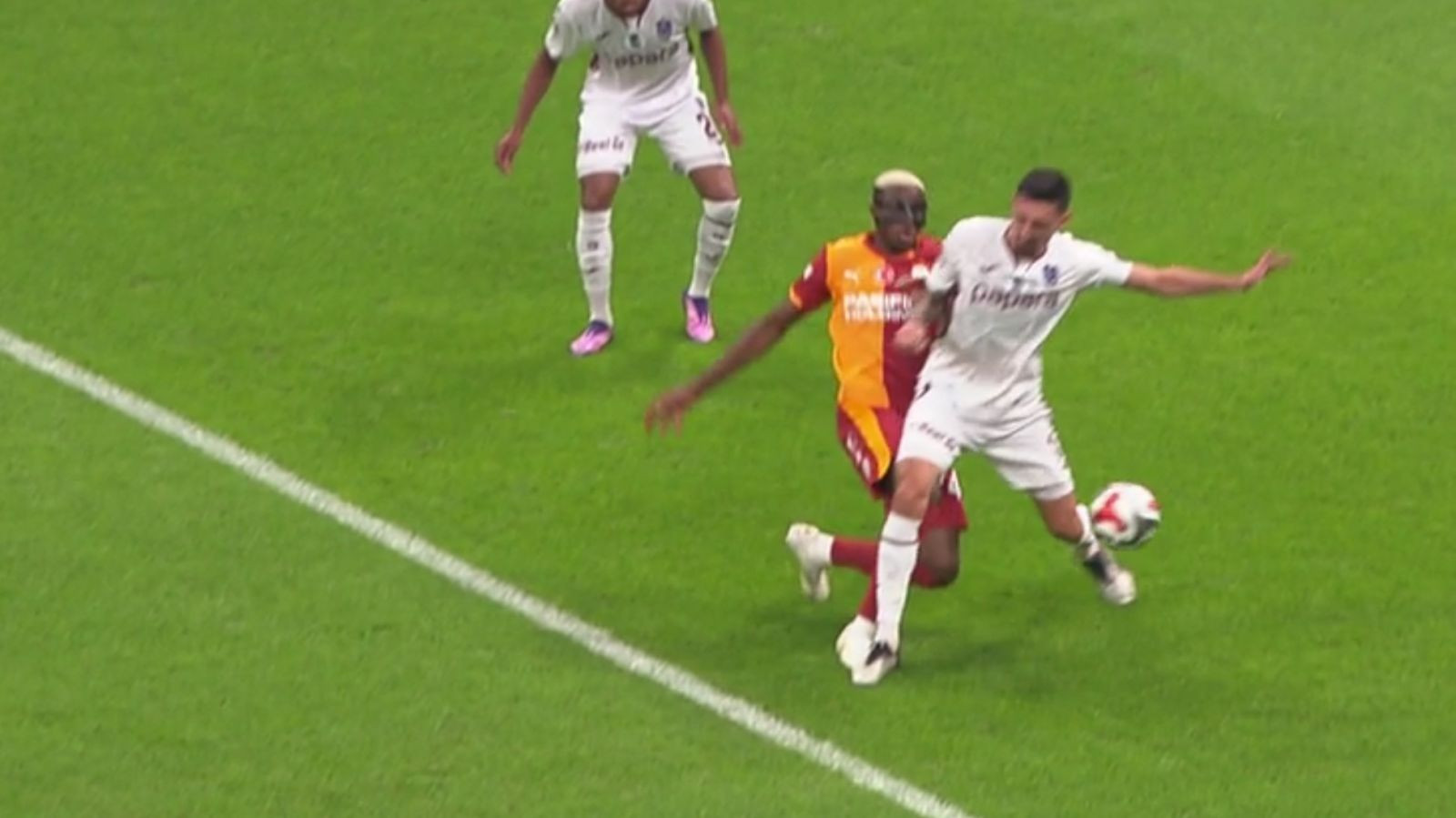 Bülent Yıldırım: Savic ayağını topa uzatıyor. Bence Osimhen'in kramponuna önemsiz bir temasta bulunuyor. Hakemin devam kararına katıldığım bir aksiyon.