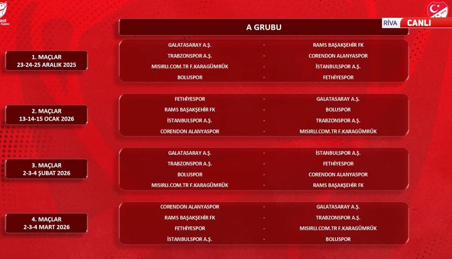 A GRUBU FİKSTÜRÜ