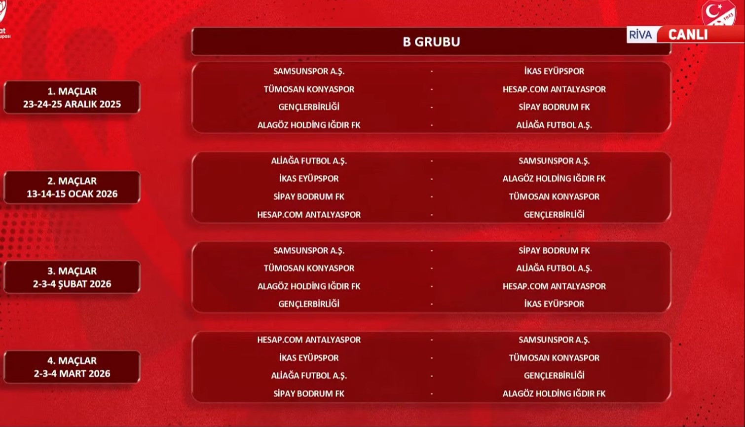 B GRUBU FİKSTÜRÜ