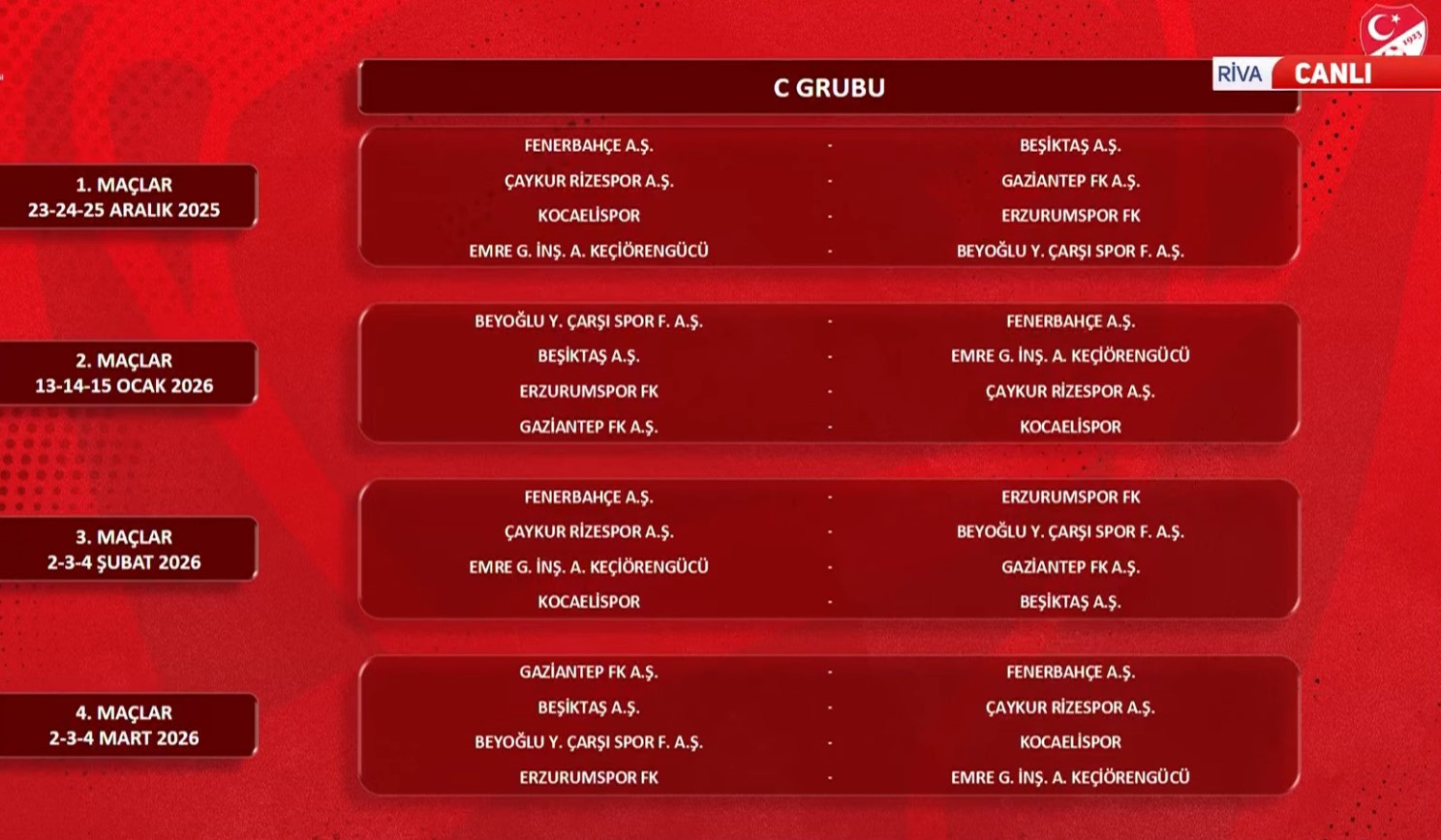 - C GRUBU FİKSTÜRÜ